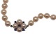 Lang perlekæde af store creme-farvet Akoya perler fra Japan. Akoya perler er regnet af nogle af de bedste perler blandt andet på grund af en general højere kvalitet, en rundere form og en flot skinnende overflade.