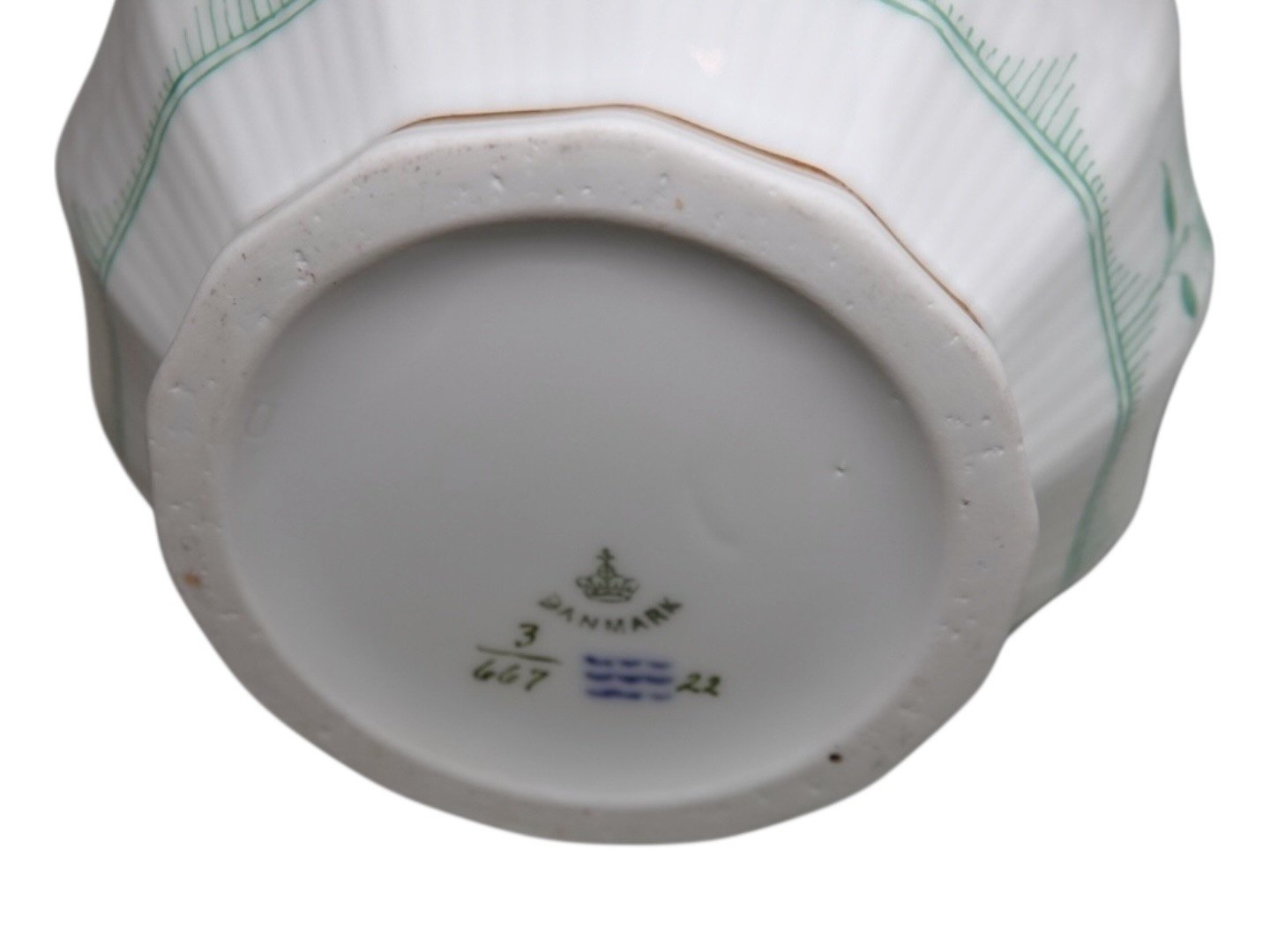 Royal Copenhagen Green Fluted Half Lace with gold trim, milk pitcher.