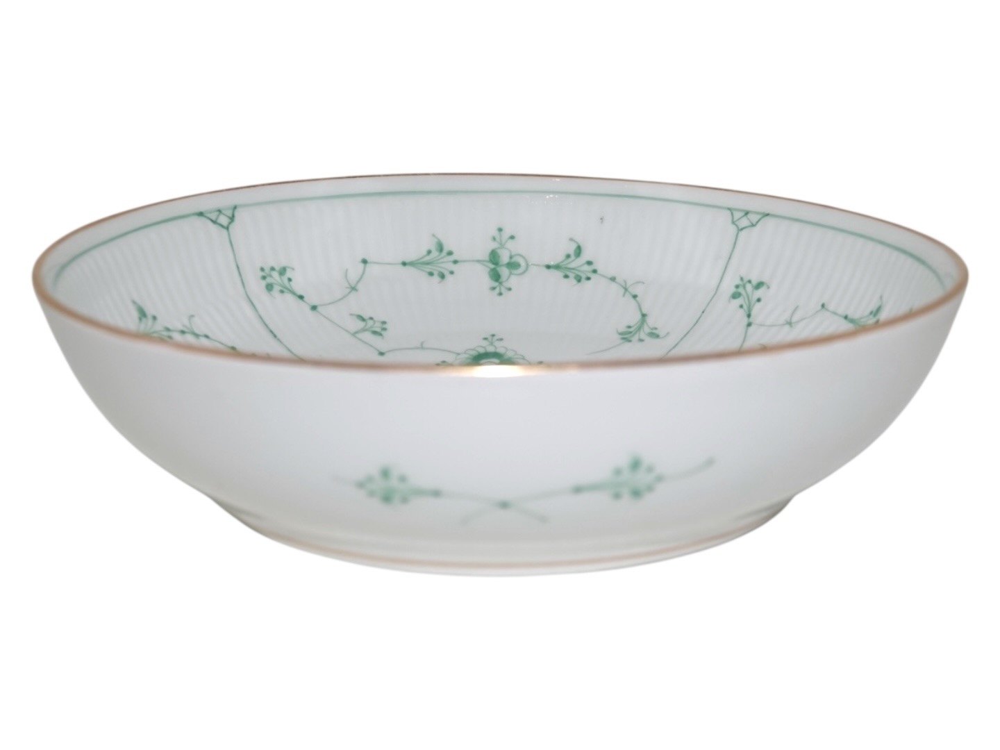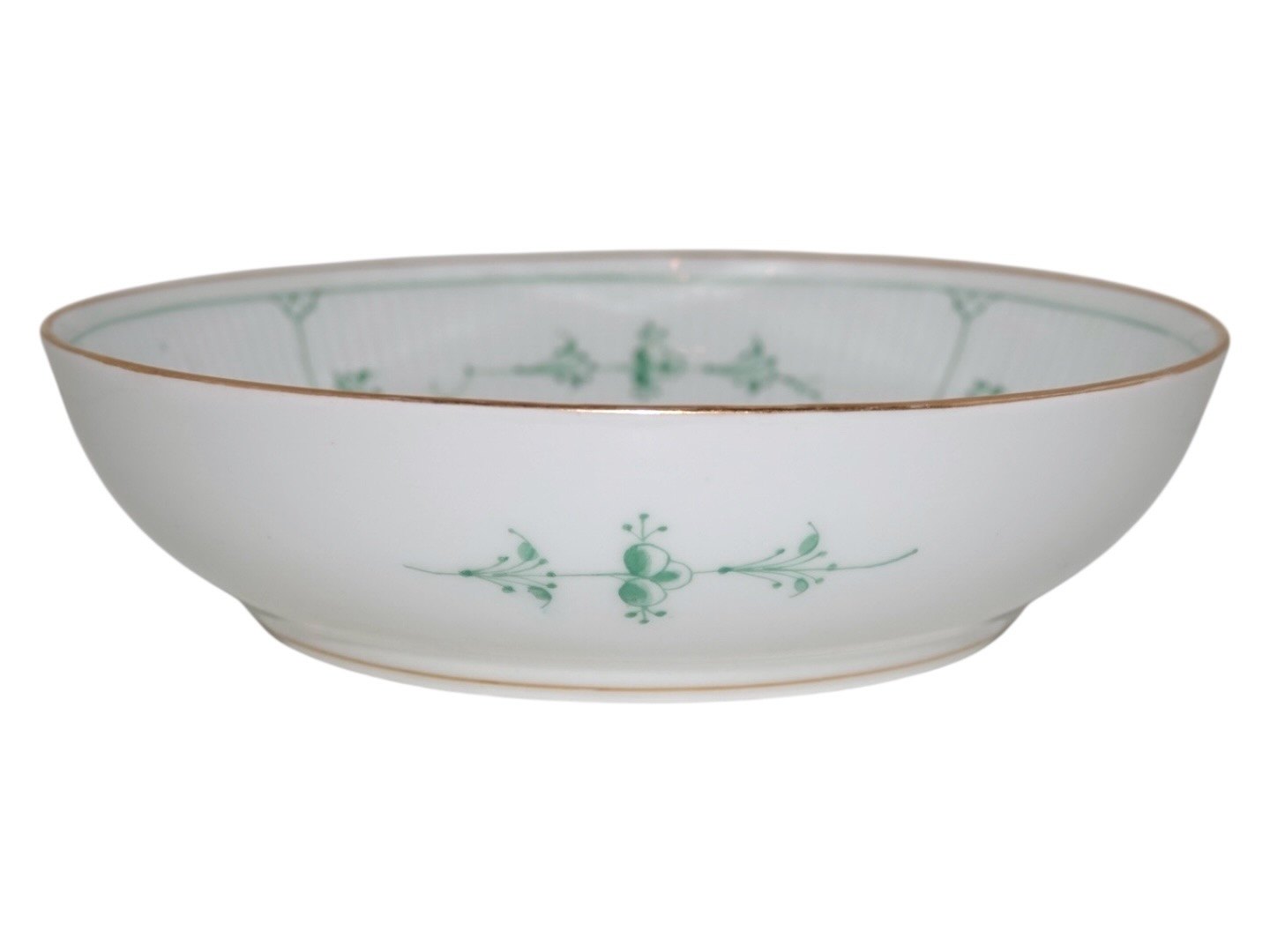 Royal Copenhagen Green Fluted Half Lace with gold trim, round bowl.