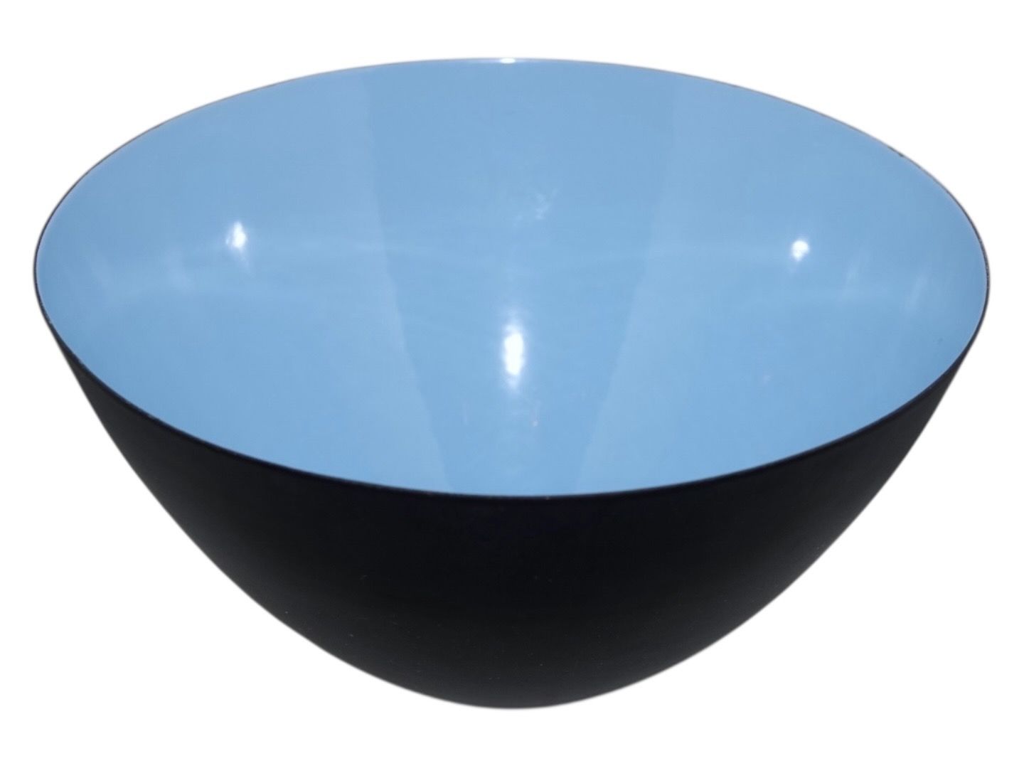 Herbert Krenchel, large krenit bowl with light blue enamel. Danish Modern from the 1950'es. Diameter 25.0 cm. height 14.0 cm. There are a few tiny marks on the edge otherwise very well kept condition.