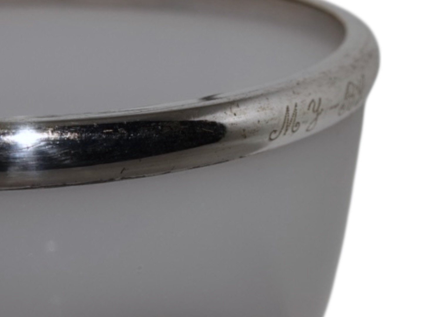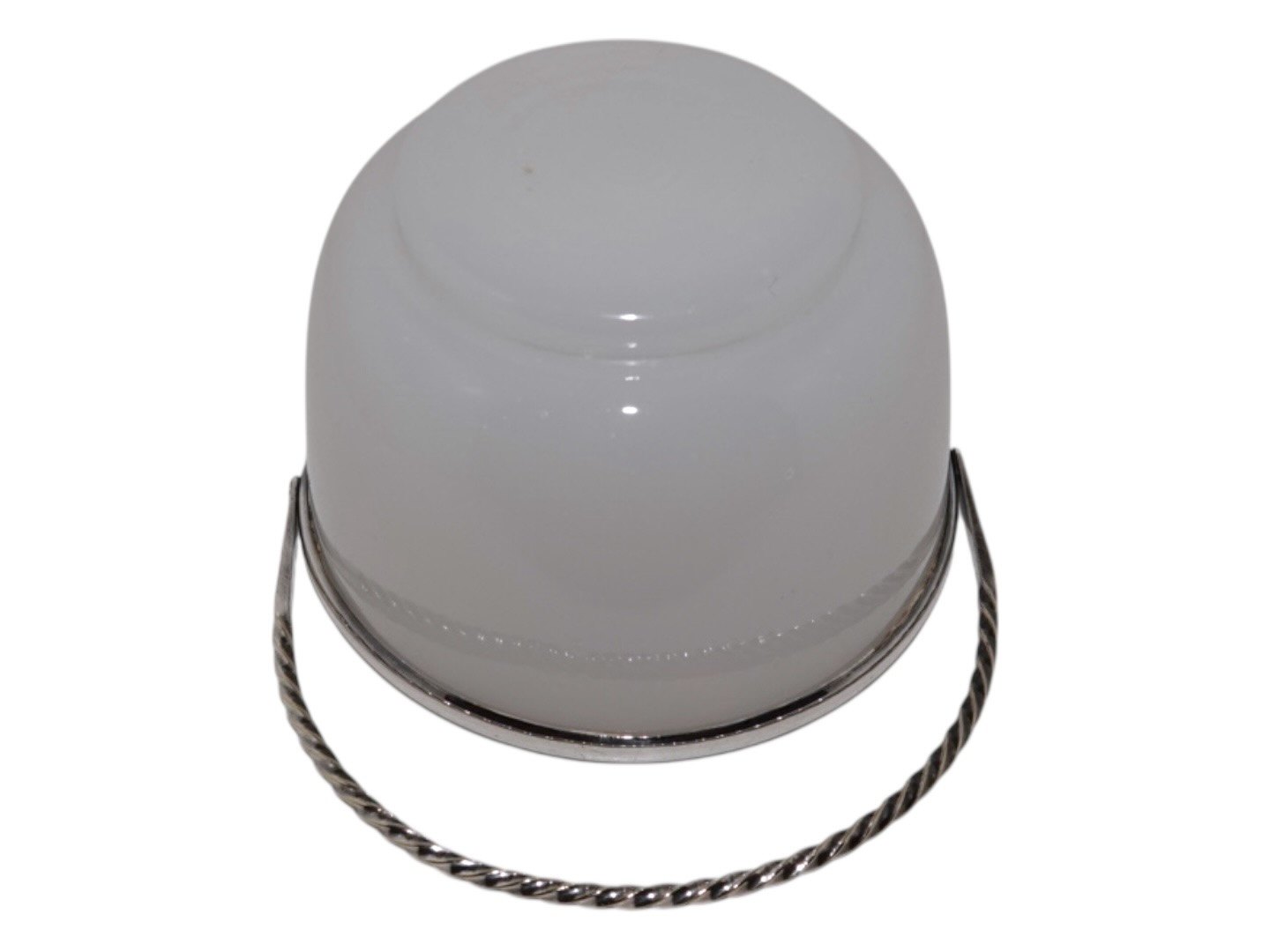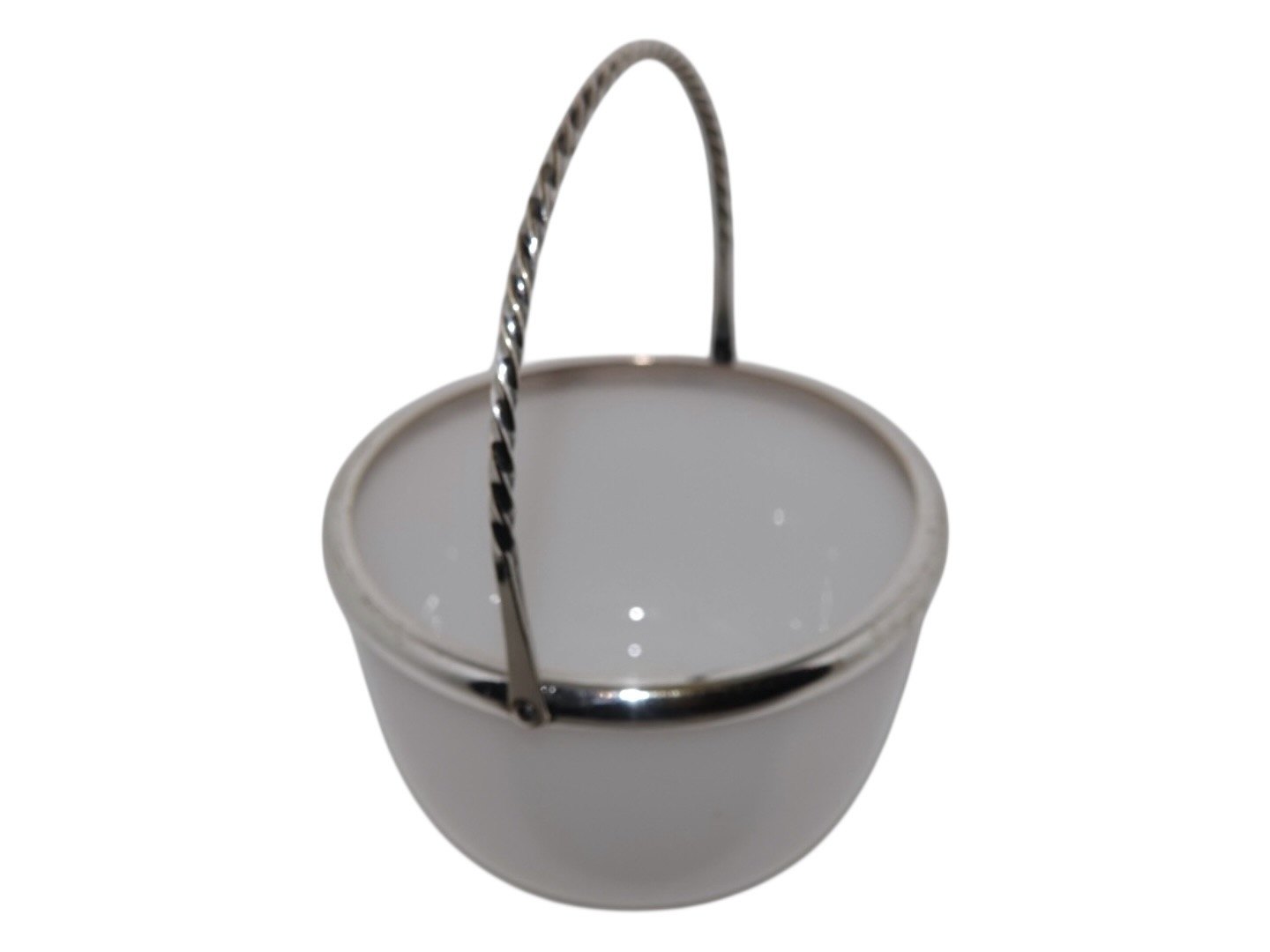 White opaline glass sugar bowl with silverplate handle from the 19th century.