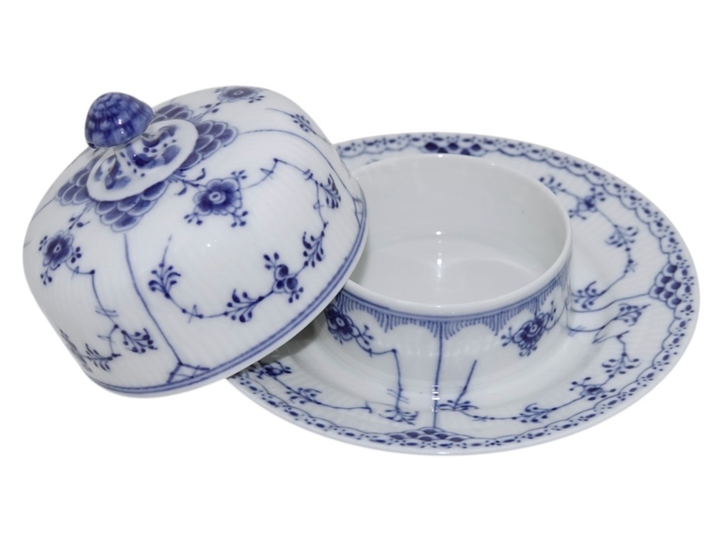 Royal Copenhagen Musselmalet Halvblonde, smørskål med underfad.