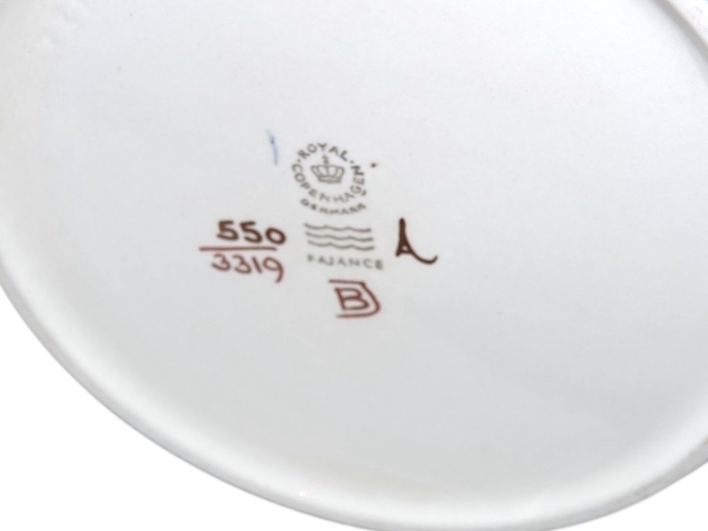 Aluminia Annette Tenera, stor tekande. Dekorationsnummer 550/3319. 1. sortering. Længde 20,5 cm. Basthanken har defekter, se foto - ellers perfekt stand uden fejl.