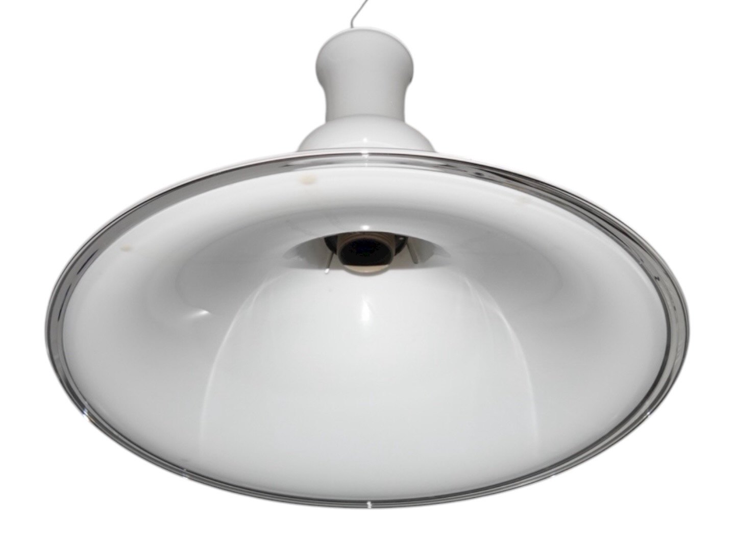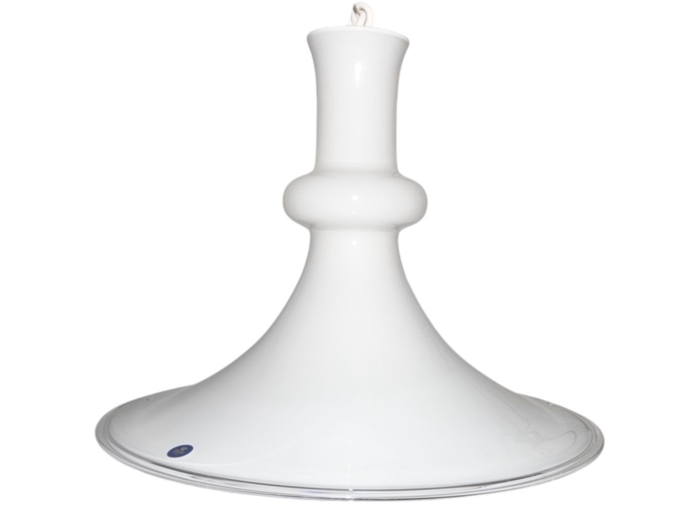 Holmegaard / Royal Copenhagen, stor Etude pendel i hvidt glas med den yderste kant med klart glas. Diameter 38,0 cm. Lampen har en meget kort ledning ellers fin fejlfri stand.