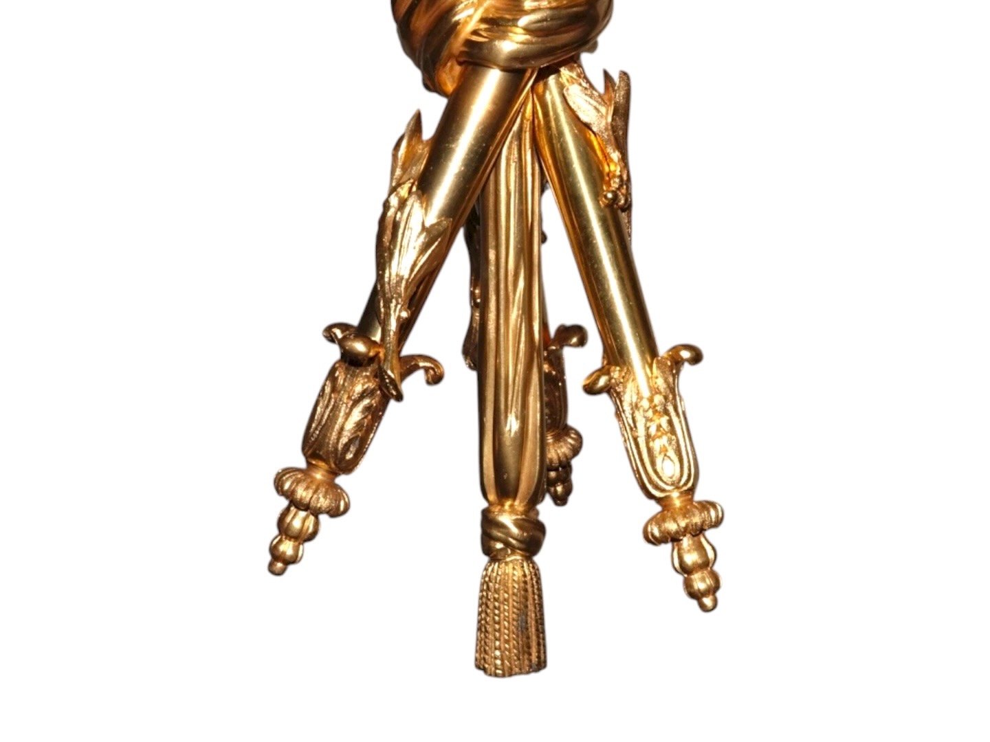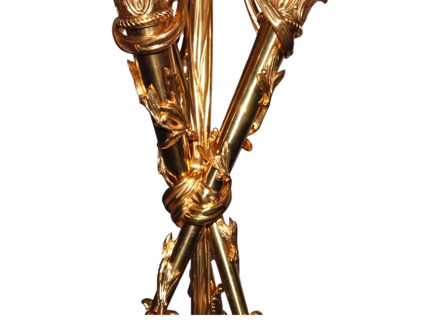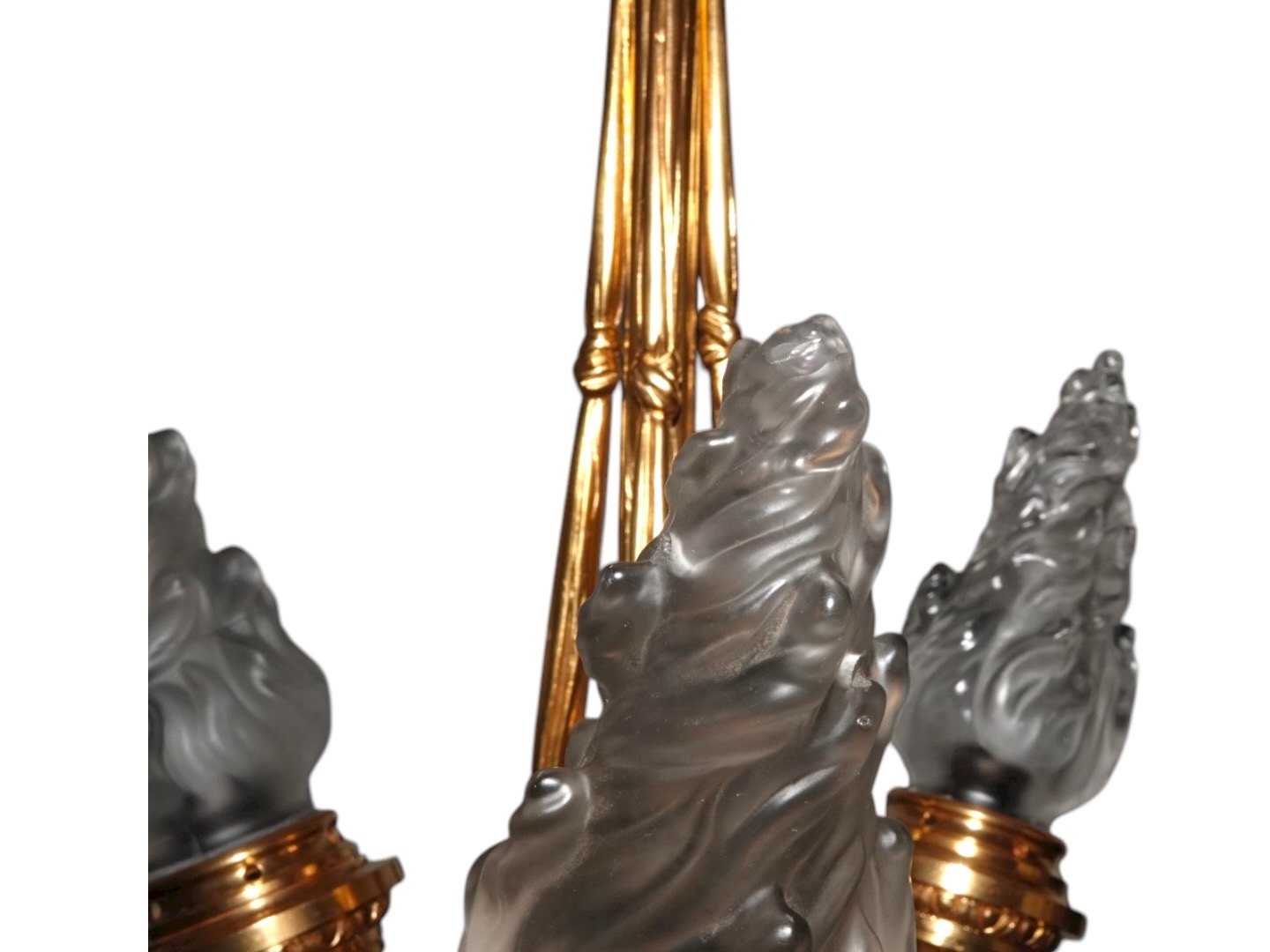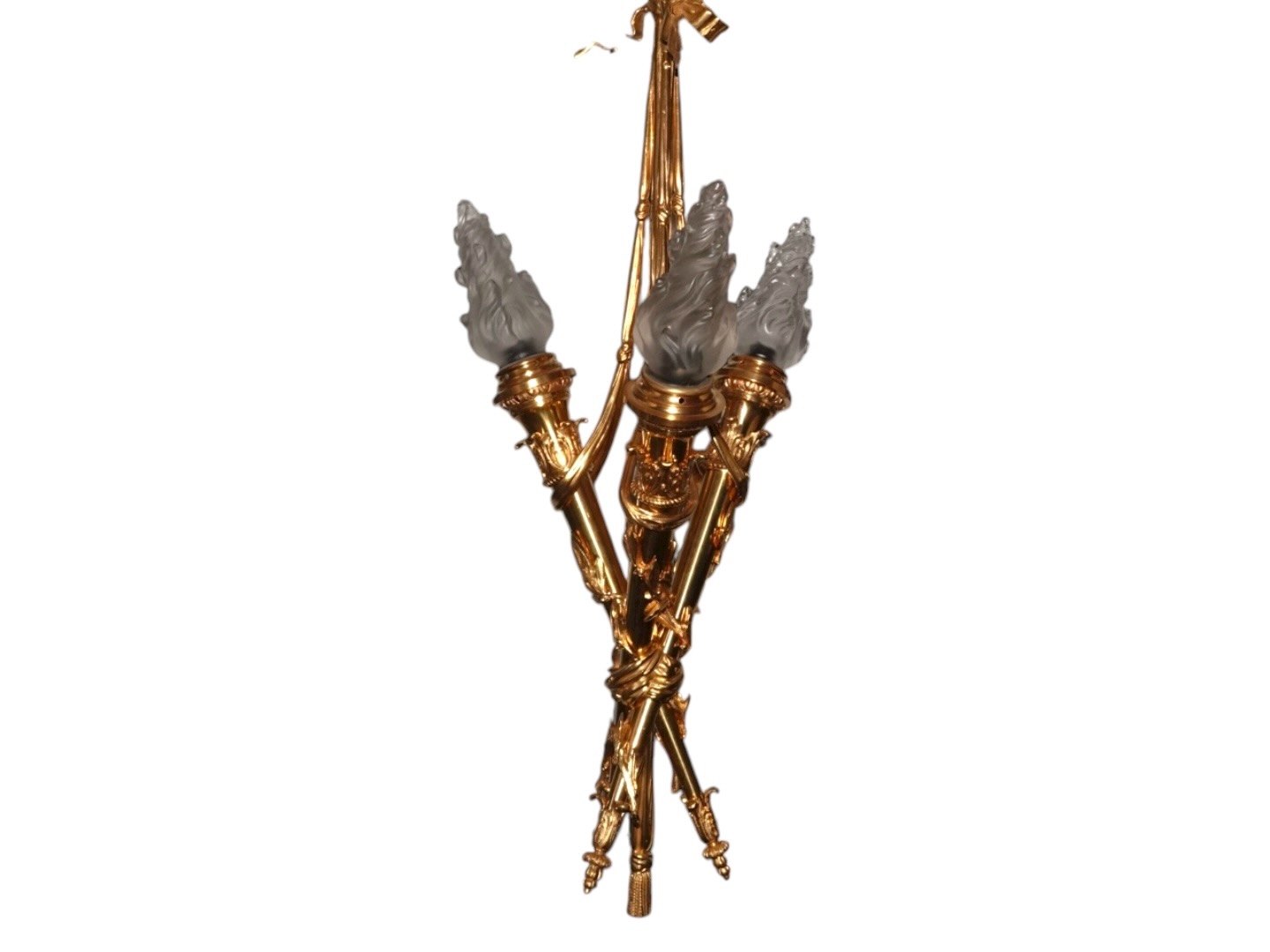 Smal lysekrone i empire stil. Den er i massiv forgyldt bronze med tre fakler og er udført i en lækker, tung kvalitet.