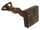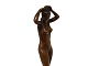 Volmer Bahner (1912-1995) bronze figur af nøgen dame der reder sit hår. Hun står på en sten sokkel.