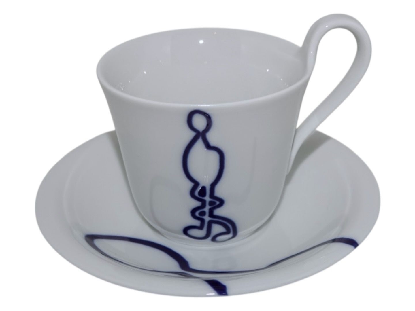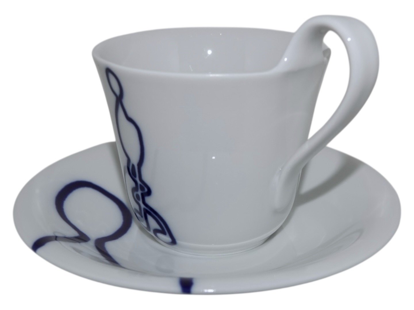 Royal Copenhagen Musica, højhankskop med tilhørende underkop. Dekoration E.