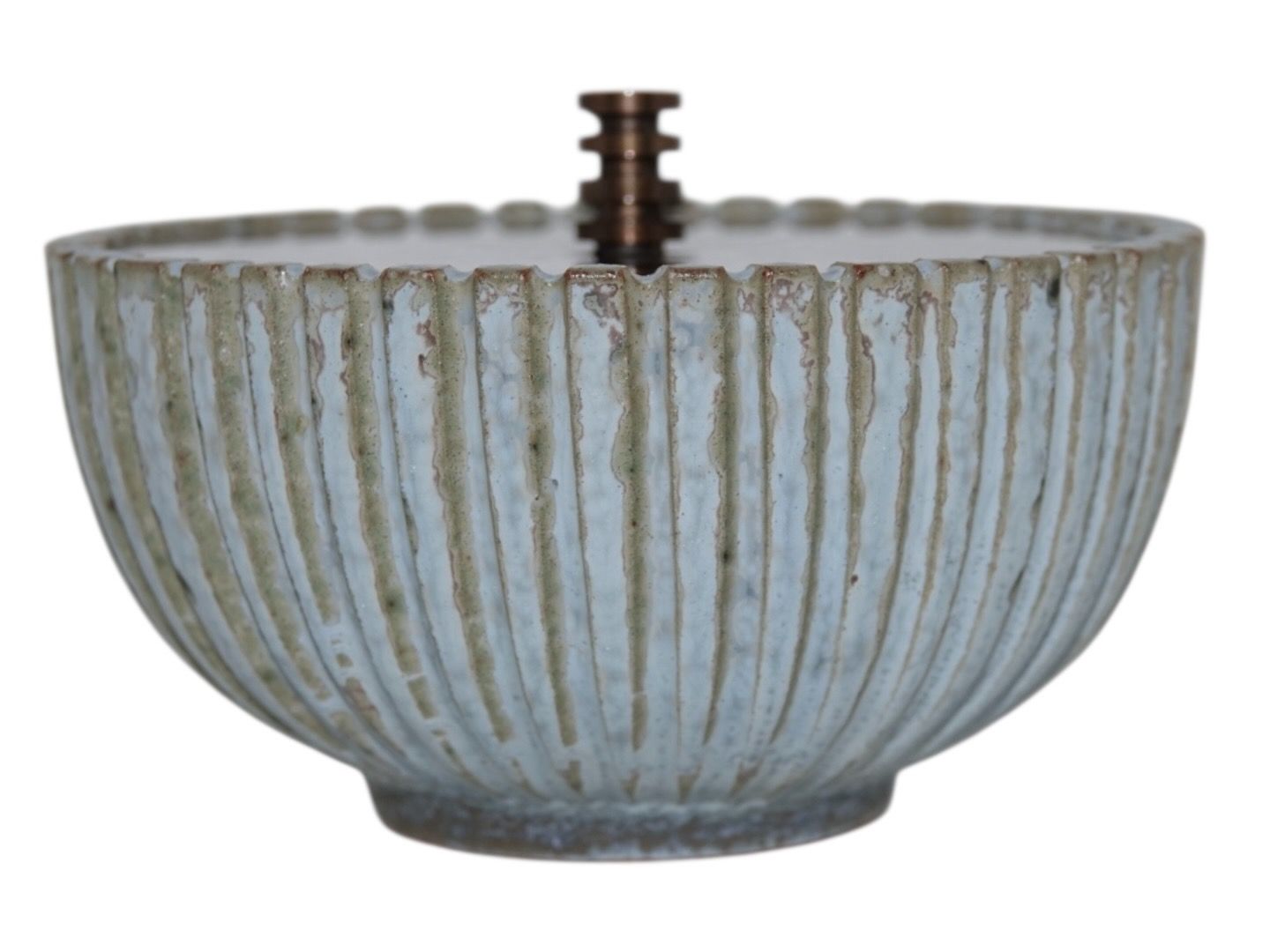Arne Bang keramik, skål med en flot lyseblå glasur samt originalt bronzelåg.