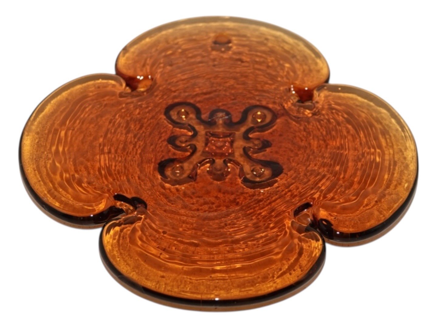 Holmegaard, karamelfarvet solfanger i form af firkløver fra 1970'erne.
