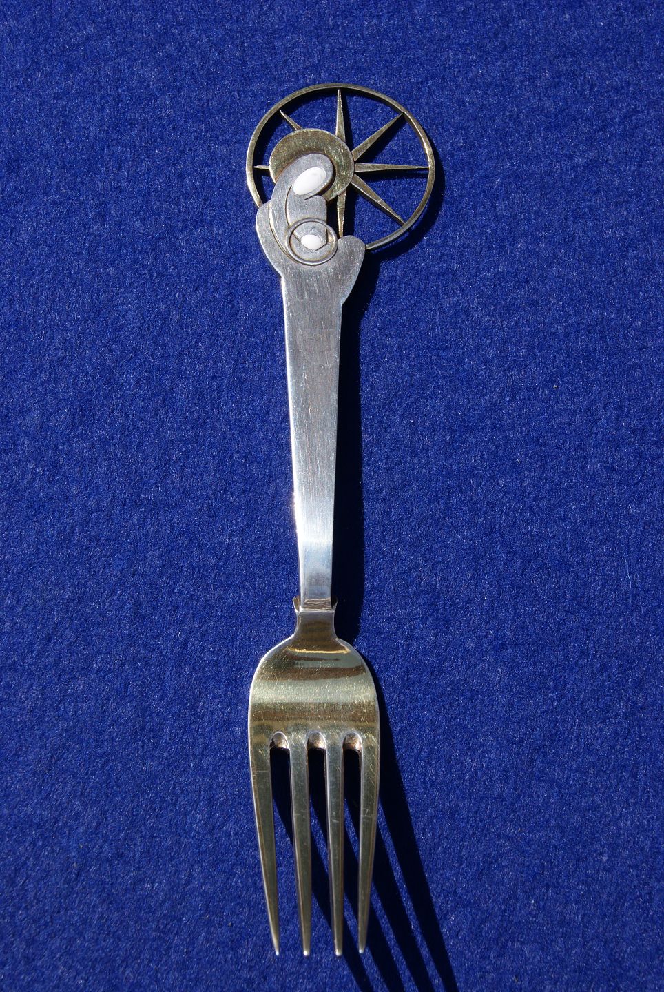Michelsen Christmas spoons & forks of Danish gilt silver. Anton Michelsen Christmas fork 1942 in a good condition.