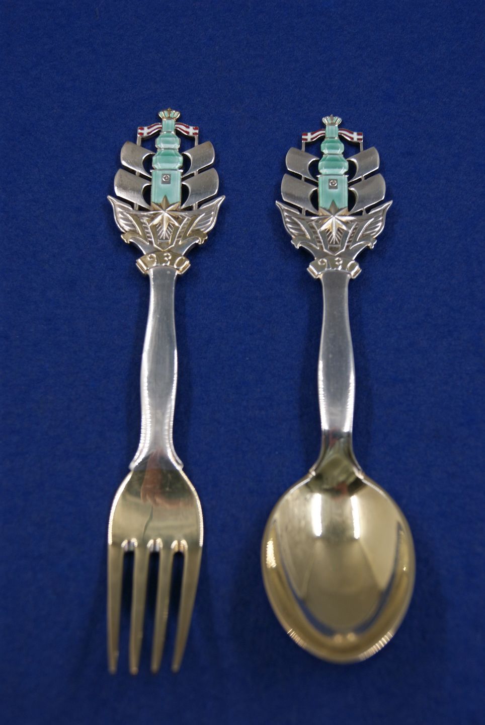 Michelsen set Christmas spoon and fork 1969 of Danish gilt sterling silver