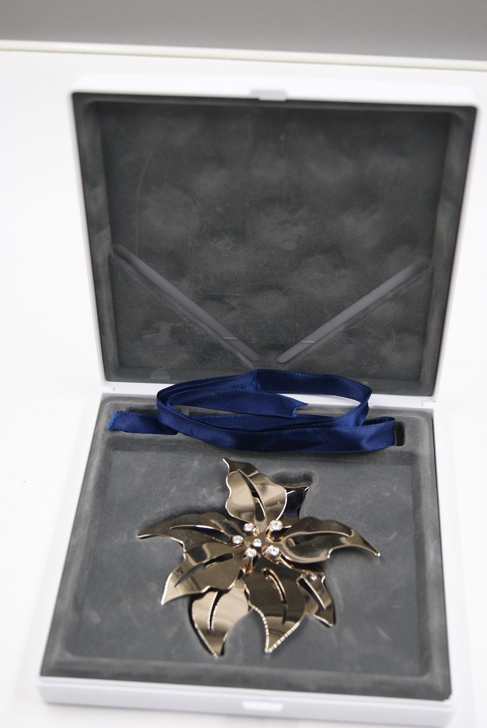 Christmas Ornament 2001 Poinsettia of gilt brass by Georg Jensen, Denmark.
