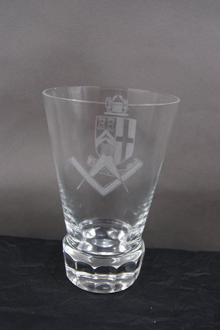 Danish Masonic glass Freemason beer glass engraved with freemason symbols on an edge-cutted foot.