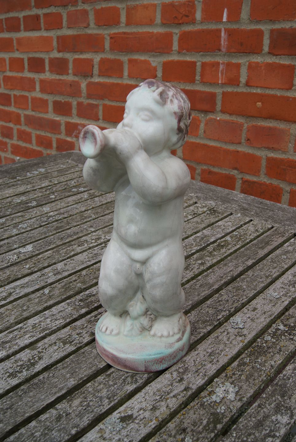 Naked boy with trumpet in a good condition, apart from a chip on the low plinth, see extra photo.