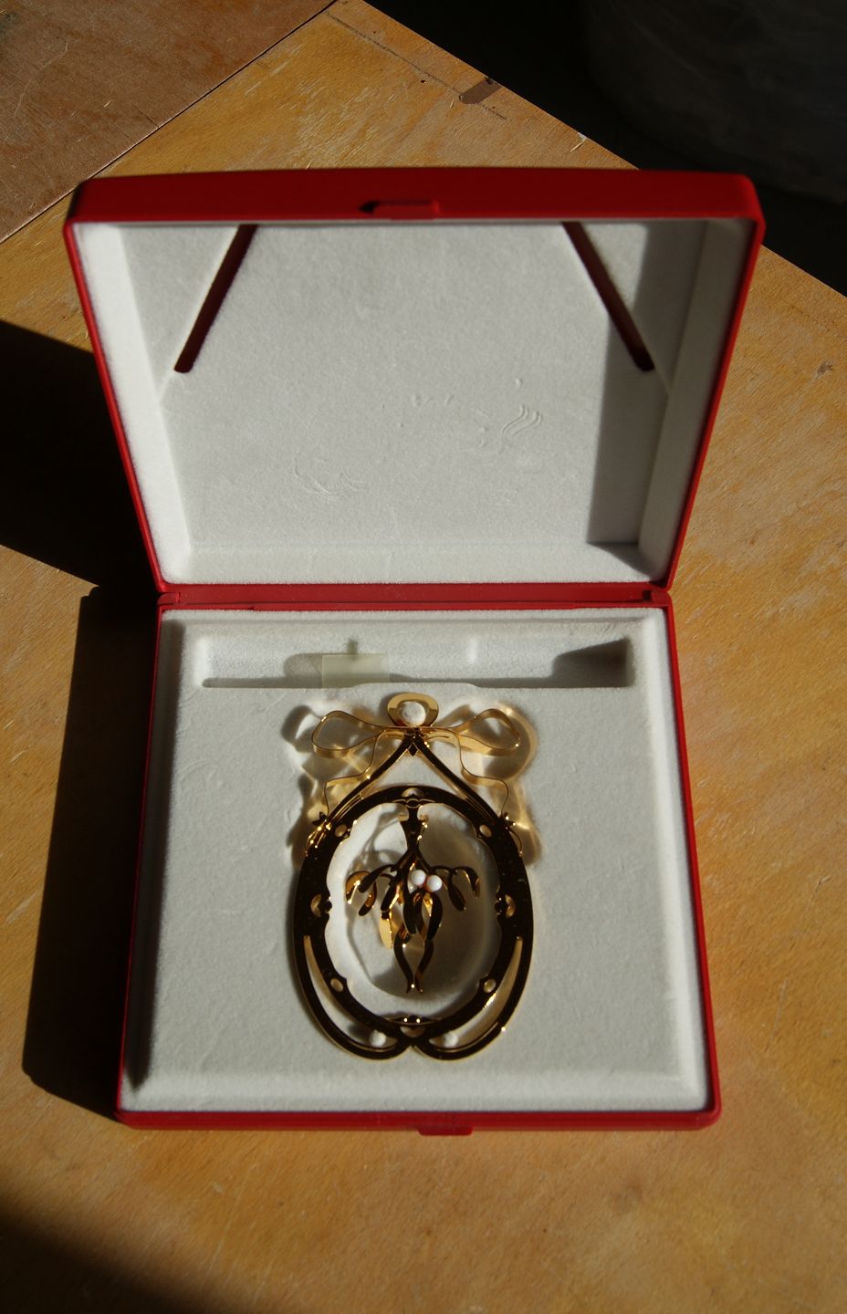 Christmas Ornament 1994 Mistletoe of gilt brass by Georg Jensen, Denmark.