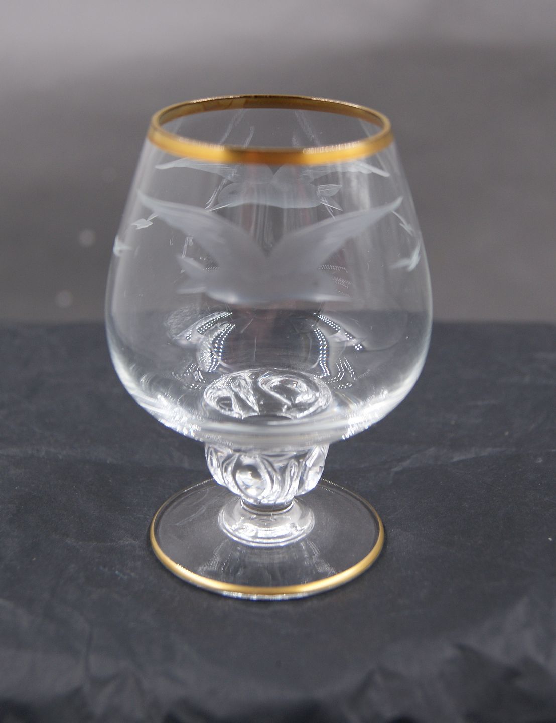 Seagull glassware with gold rim by Lyngby Glass-Works, Denmark. Cognac glass in good condition. H 8.5cm - Ö 4cm Item number: g-Mågeglas m. guld cognac.SOLD