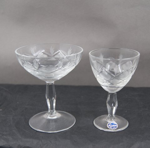 Wien Antik or Vienna Antique glassware with knob on cutted stem. by Lyngby Glass-Works, Denmark.