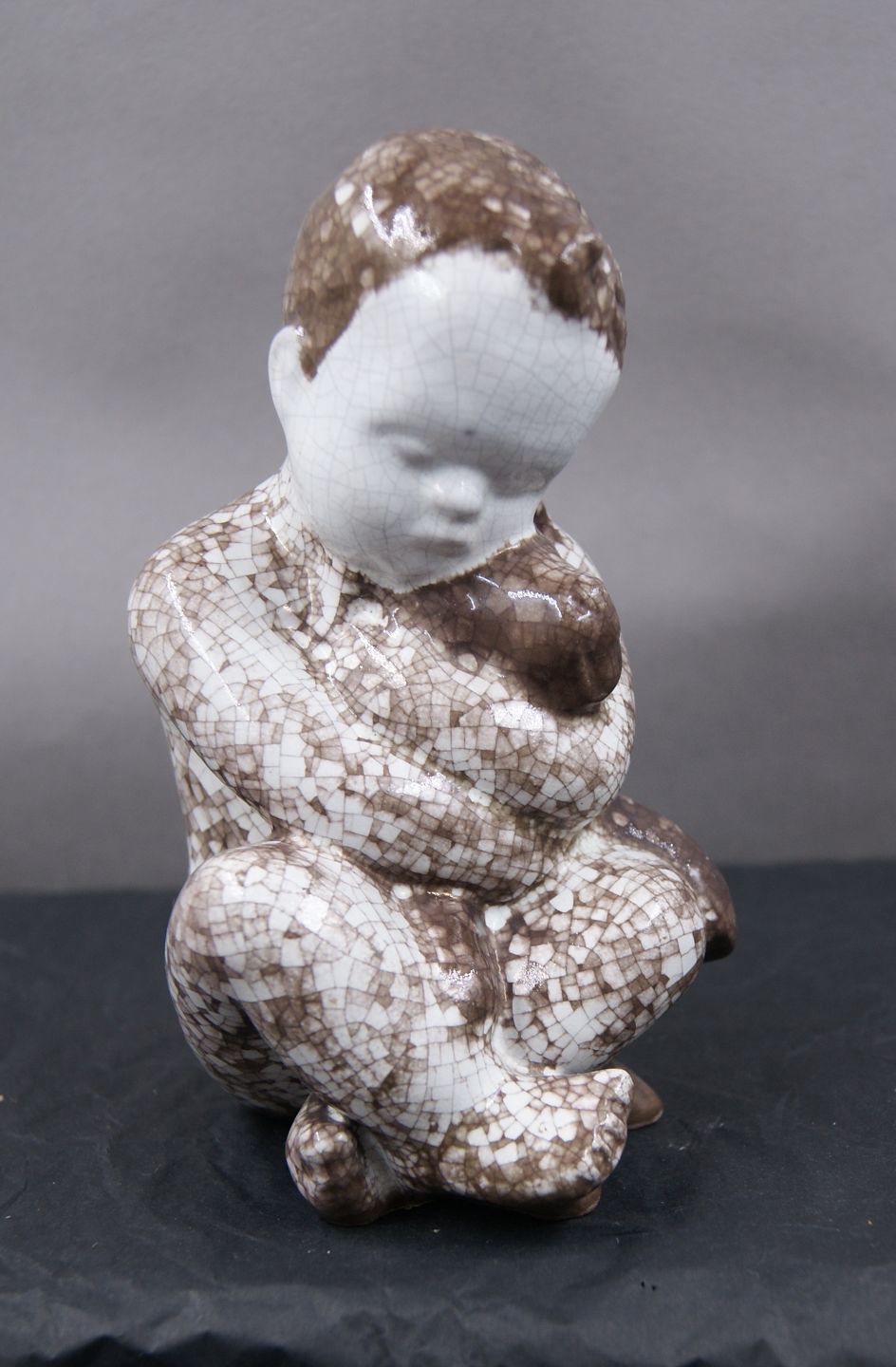 Michael Andersen Danish pottery, Bornholm. Boy with puppy No 1741