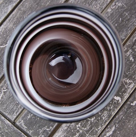 Schwedische Glaskunst. Schöne Blumentopf, dekoriert mit brauen, grauen und weissen Streifen. H 16,5cm - Ö 13,5cm Bestellnummer: g-Urtepotteskjuler svensk
