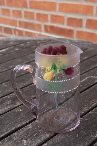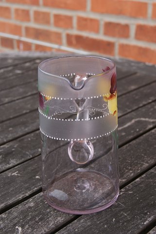 Schöne Glaskanne mit Blumen dekoriert, um Jahr 1900 herum. H 15cm Bestellnummer: g-Kande med blomster