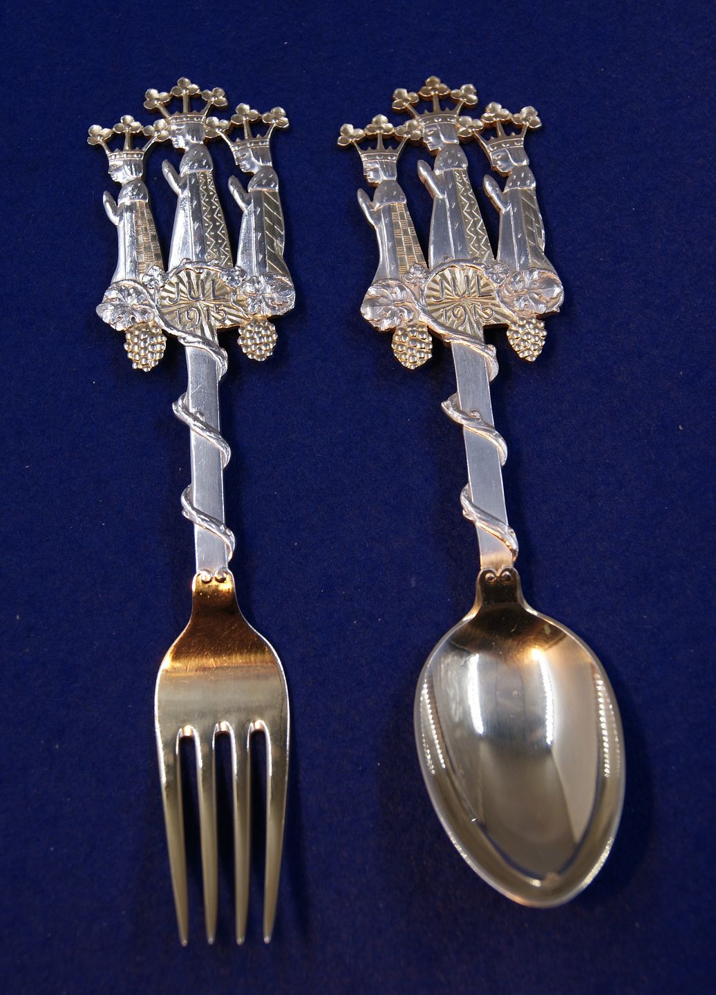 Anton Michelsen Set Weihnachtslöffel und Gabel 1915 aus Sterling Silber und 3 Türme Silber in gutem Zustand.