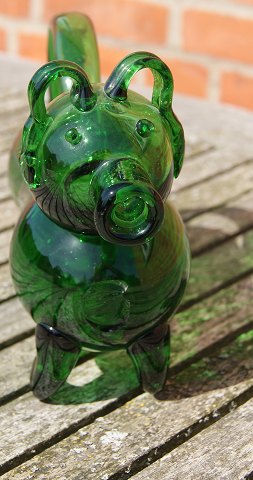 Schwedischer Schnapshund mit Griff in dunkelgrünem Glas. L 22,5cm Bestellnummer: g-Svensk snapsehund grønt glas