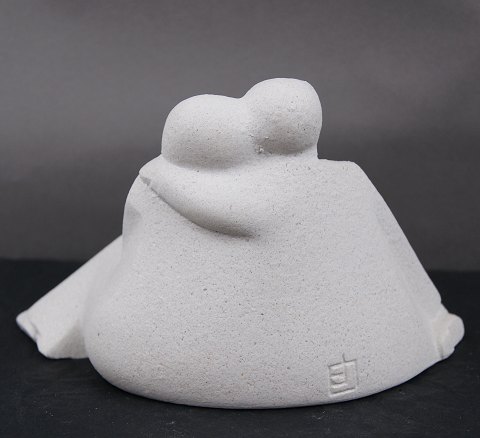 Marbell, Belgien. Sitzendes Liebespaar, weiße Steinkunstfigur in sehr gutem Zustand. B 15cm Gewicht 0,5 Kilo Bestellnummer: ke-Marbell StoneArt kærestepar