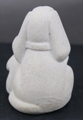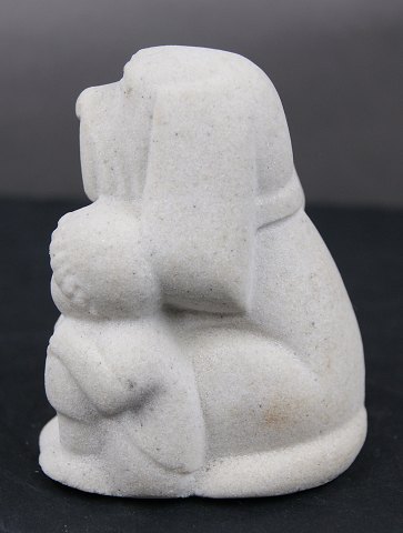 2 Freunde oder ein Hund kümmern sich um das Baby, leicht sandfarben Steinkunstfigur in sehr gutem Zustand.