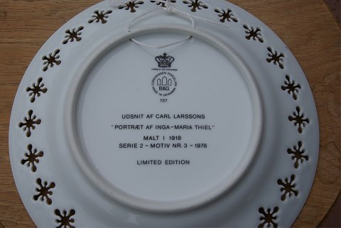 Carl Larsson platte fra B&G, udsnit af portræt af Inga-Maria Thiel, malet i 1918. Serie 2 - motiv nr. 3 fra 1978. Limiteret antal.
