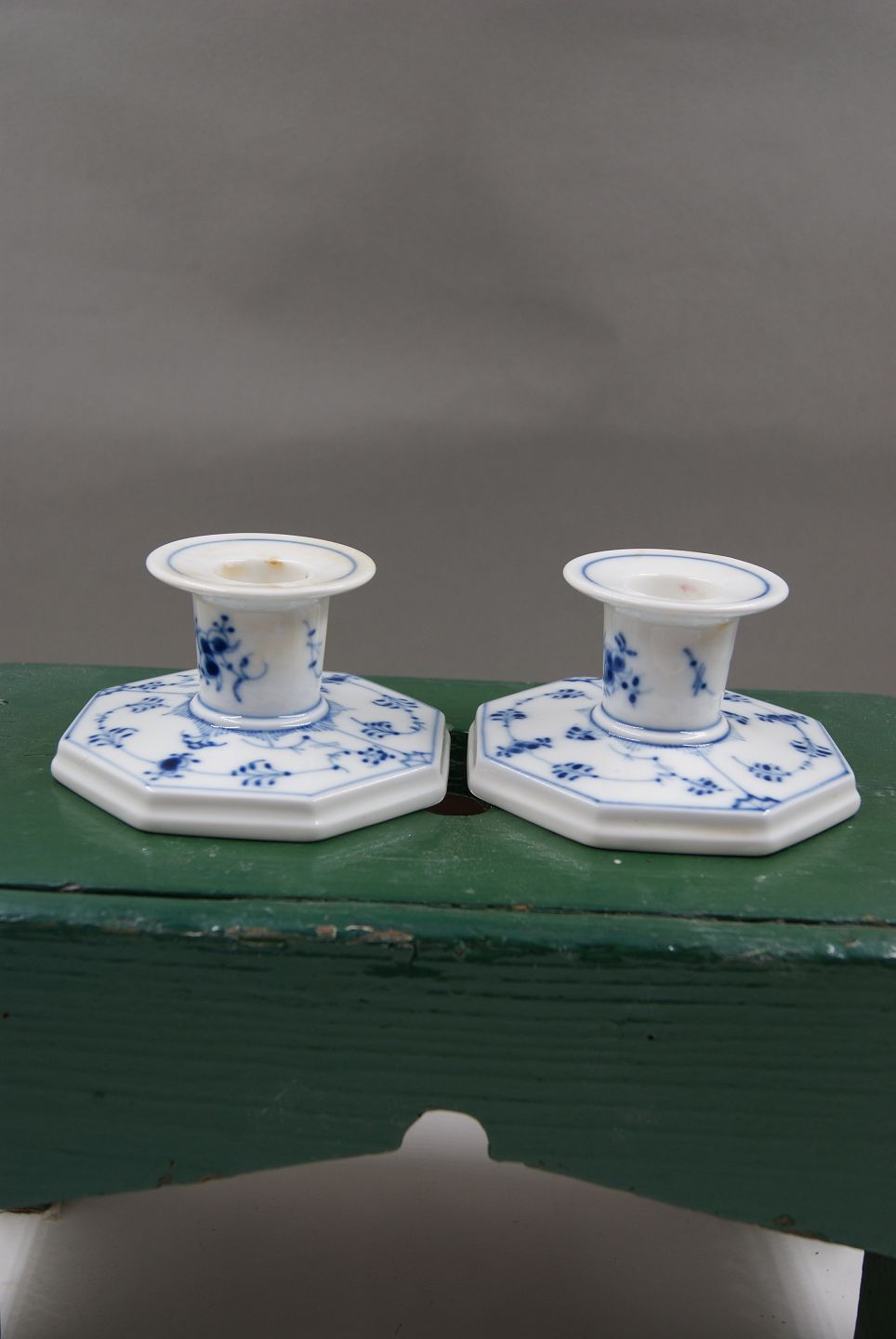 Musselmalet riflet porcelæn. Par lave lysestager nr. 3334