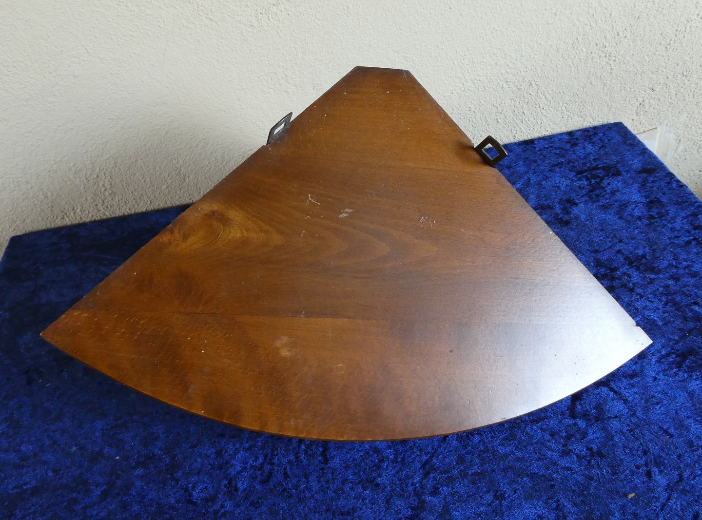 Pæn og velholdt hjørnehylde i mørkt træ til ophæng. B 42cm - H 26cm - D 26cm Emne nummer: m-Hjørnehylde i mørkt træ