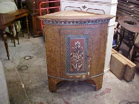 Efter afdækning af ca. 7 lag maling dukkede en meget smuk almueblå farve frem