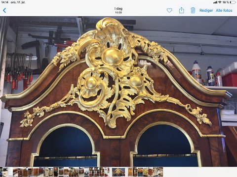 Ny top og ben skæres og forgyldes på Ortmann Chatol, ca. 1740.