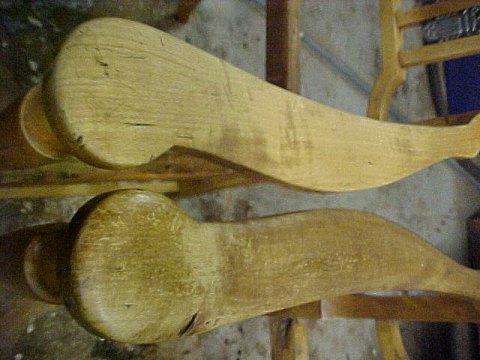 Afrensning af gammel lak og fernis på et par meget fine Bindesbøll stole, ca. 1910. Tinornamenterne på stolene er udført af sølvsmeden Georg Jensen.