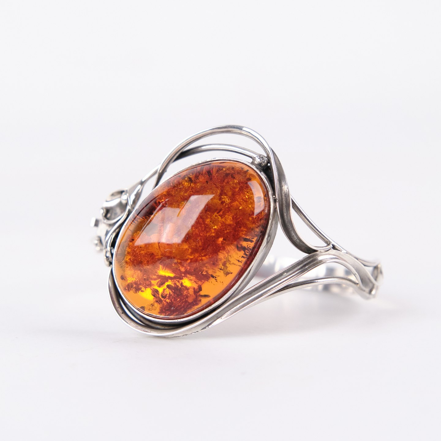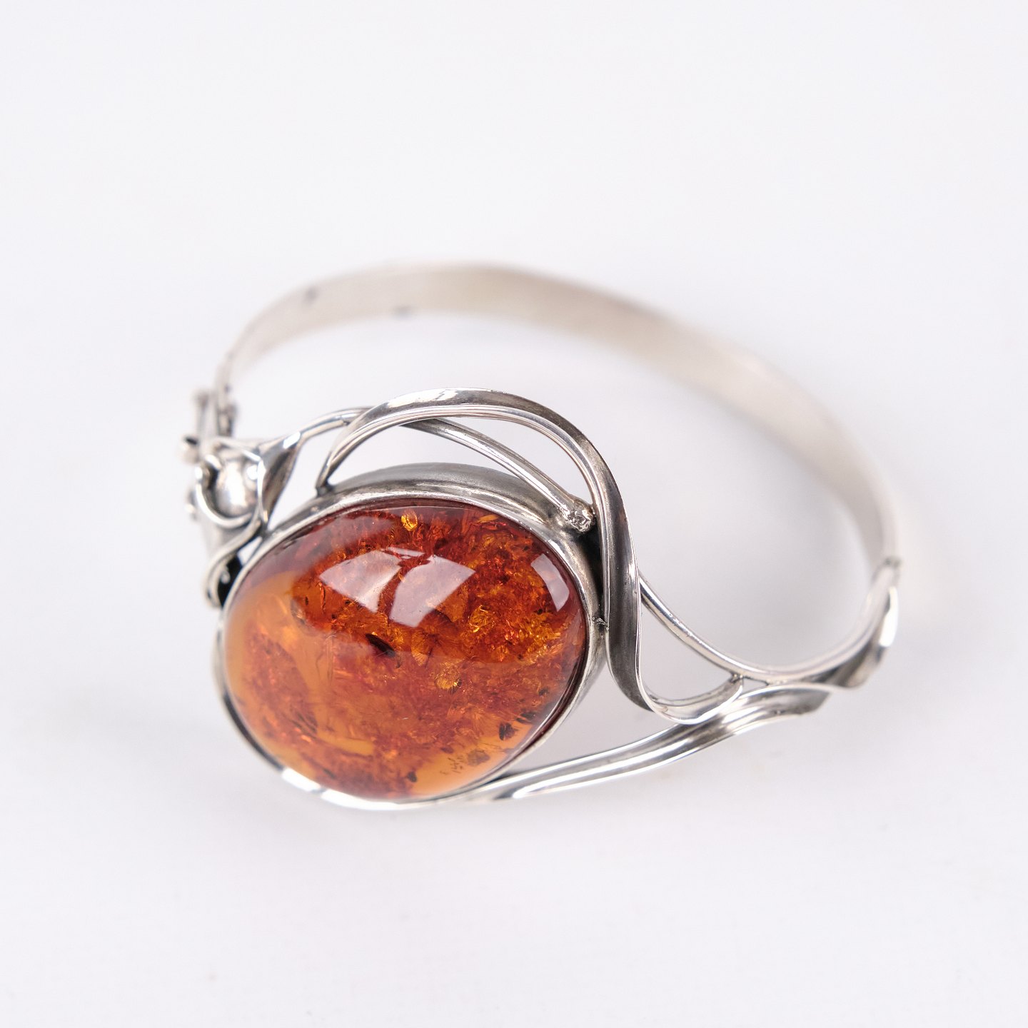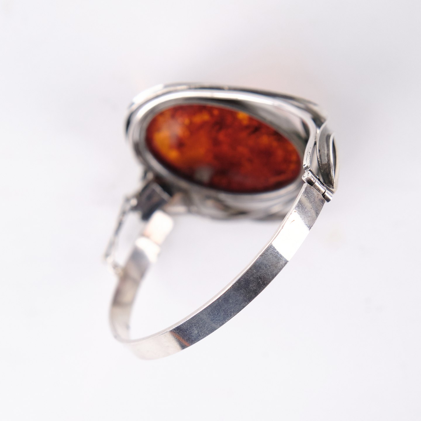 Armring i sølv med rav og sikkerhedslås. Unikt smykke design med rav.