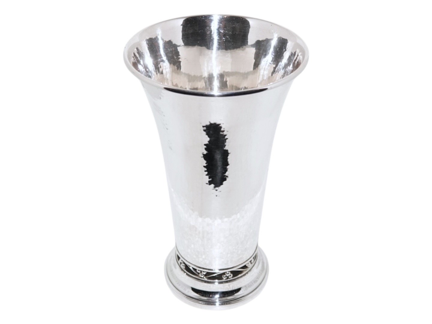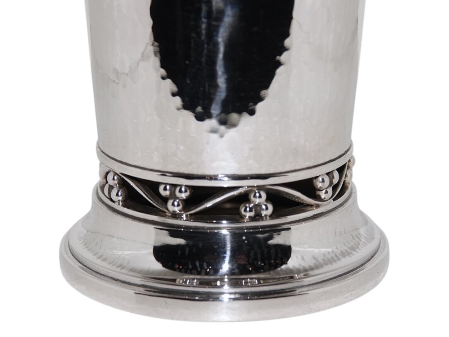 Georg Jensen hammerslået sterlingsølv, vase med gennembrudt bundkant af Harald Nielsen.