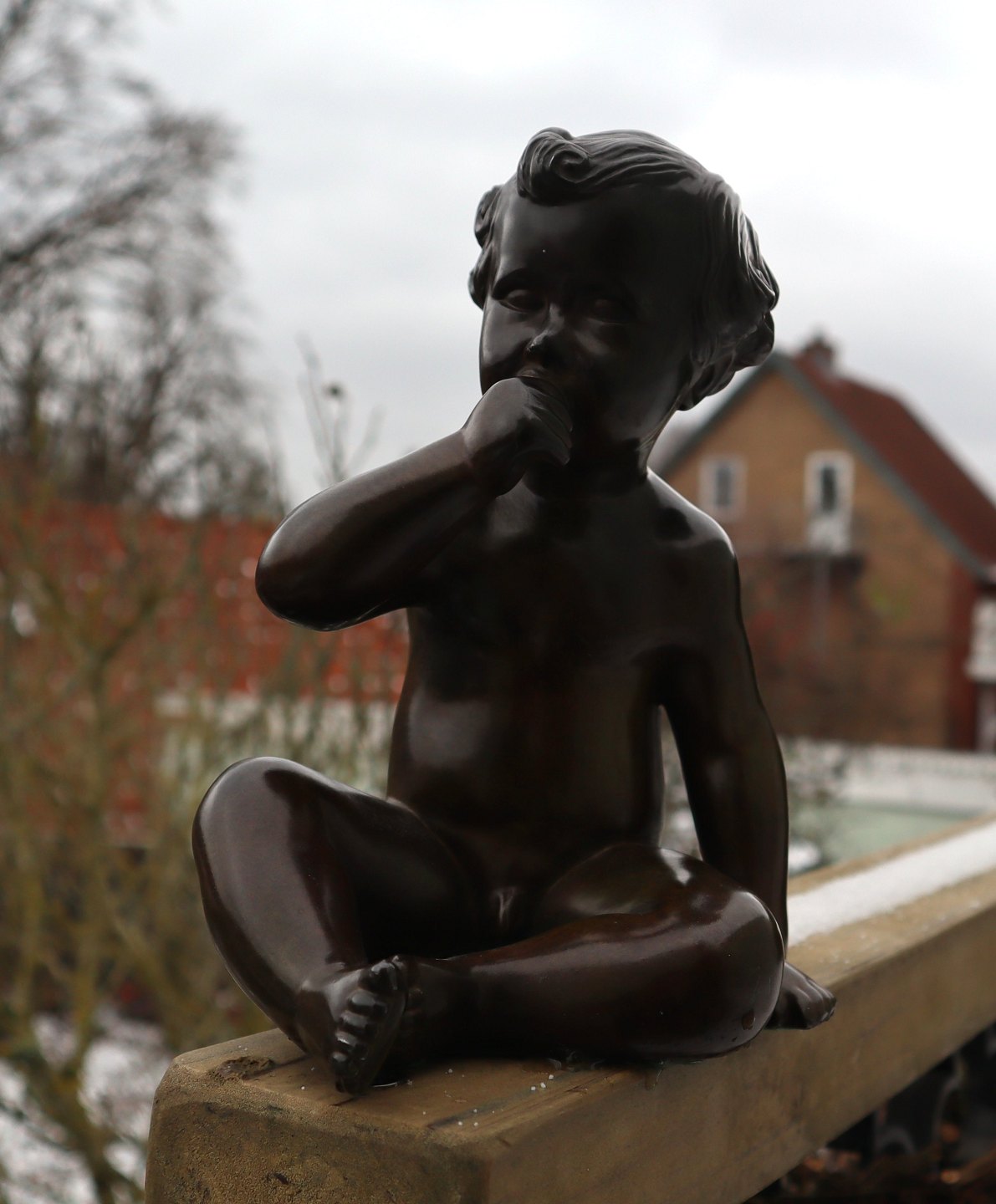 Just A Disko D 2323 Dreng sider og sutter på sin tommelfinger 19.5 cm Bronzeret statuette