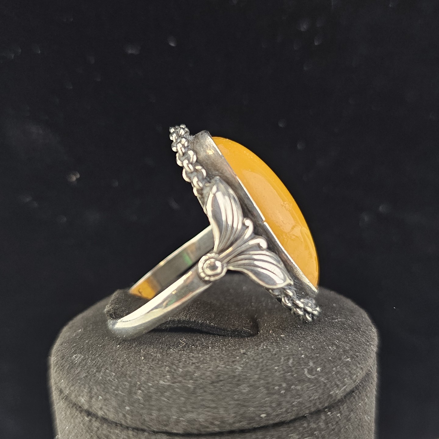 Ring i sølv udformet i skønvirke stil med rav