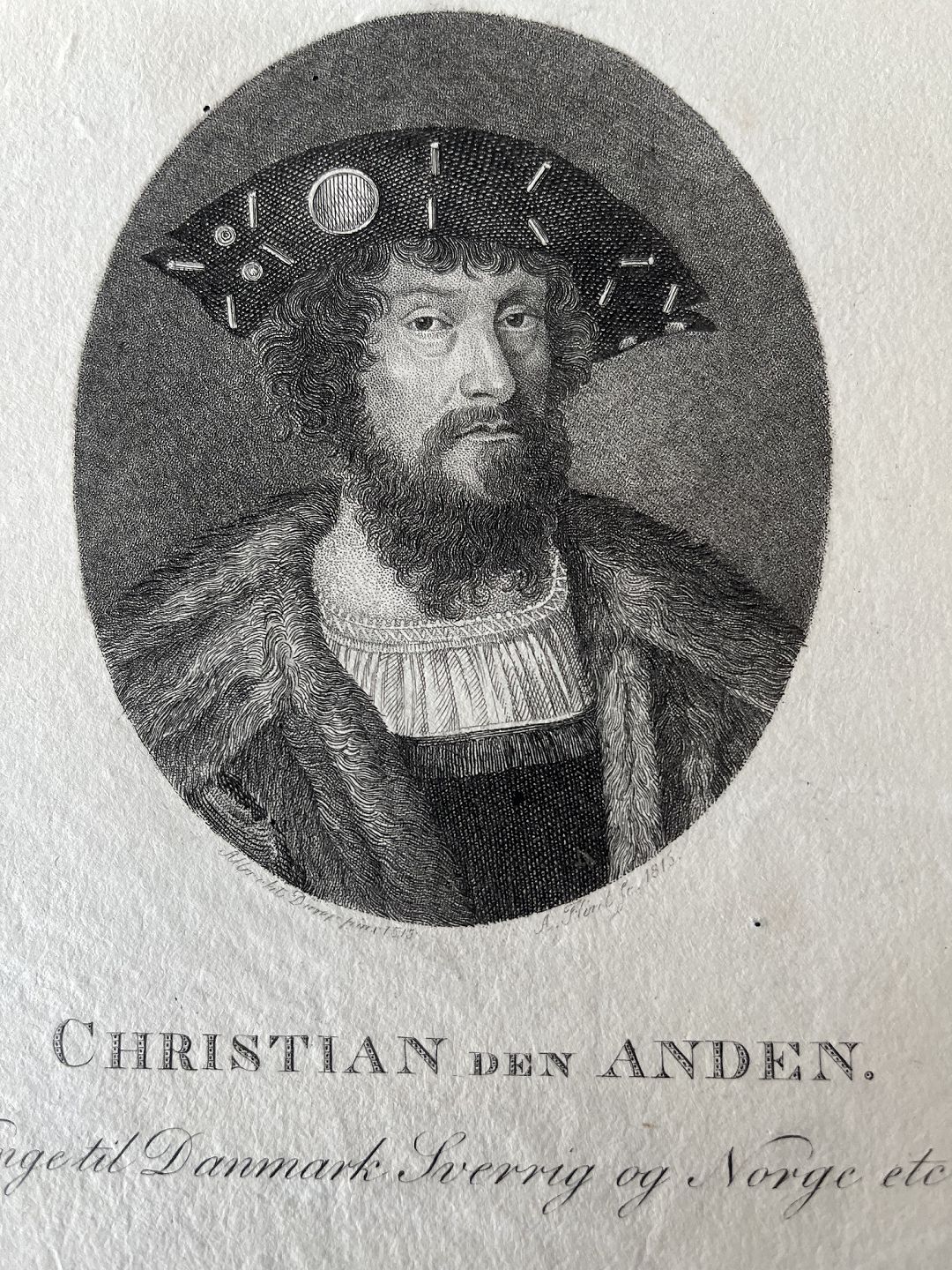 Kobberstik af Andreas Flint - Portræt af HM Kong Christian II af Danmark, Sverige og Norge.