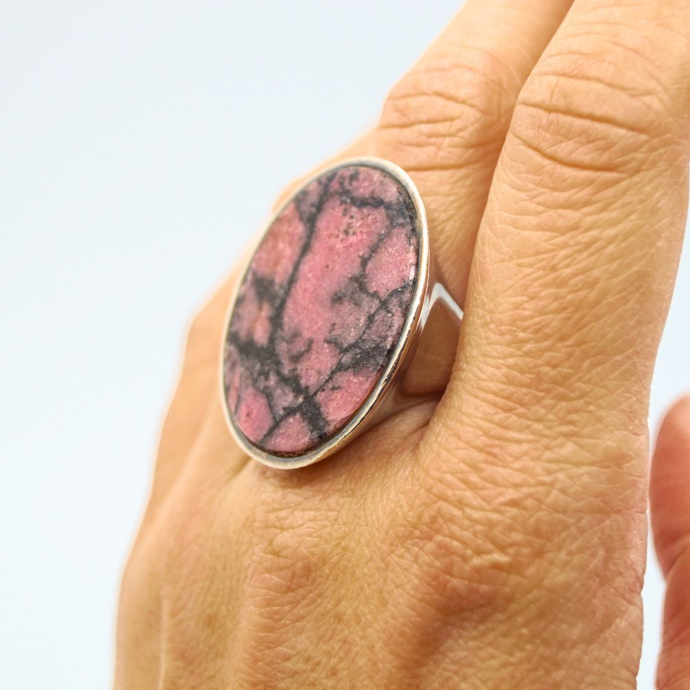 Hugo Grün; Sølvring prydet med stor oval tugtupit. Ring str. 53.