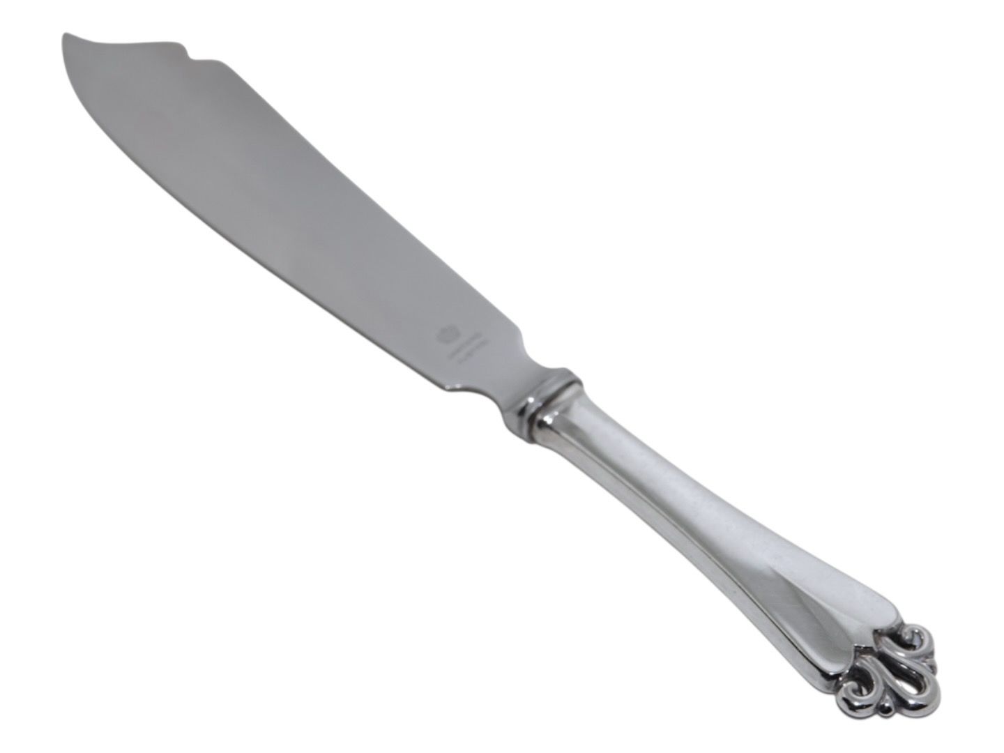 Dansk tretårnet sølv og rustfrit stål, ornamental lagkagekniv.