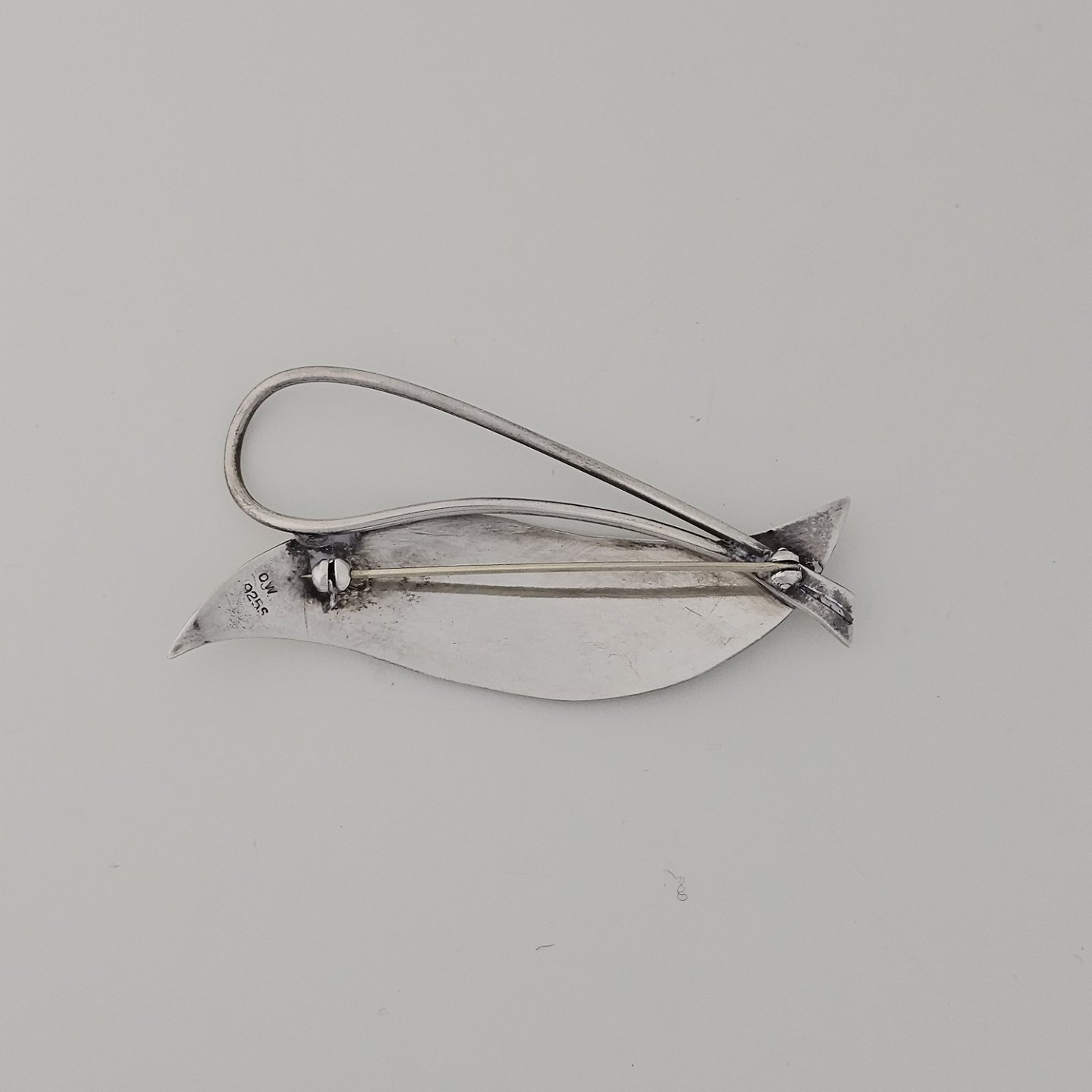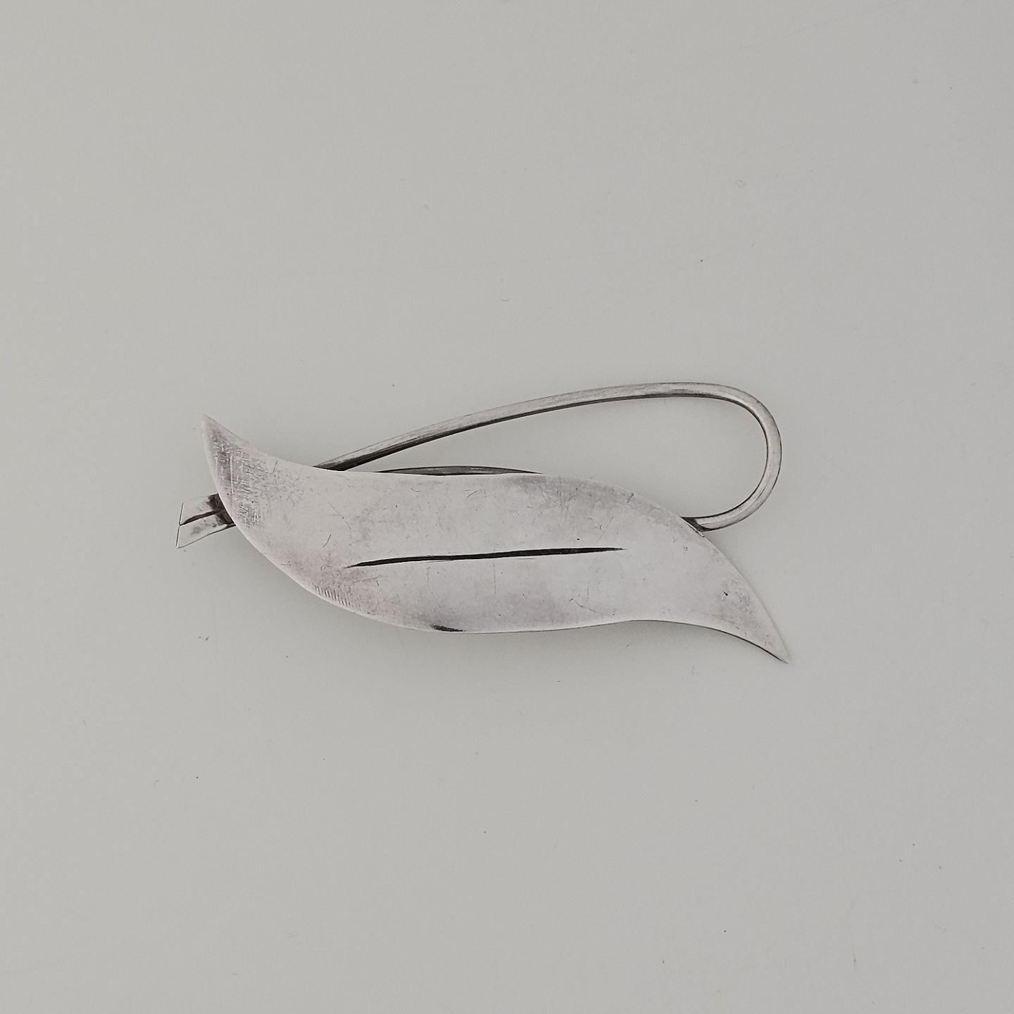 Broche i sterling sølv med motiv af et blad