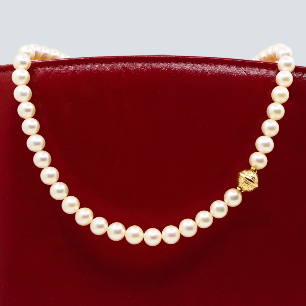 Per Borup; Kuglelås i 14 kt. guld, inklusiv perlekæde med kulturperler.