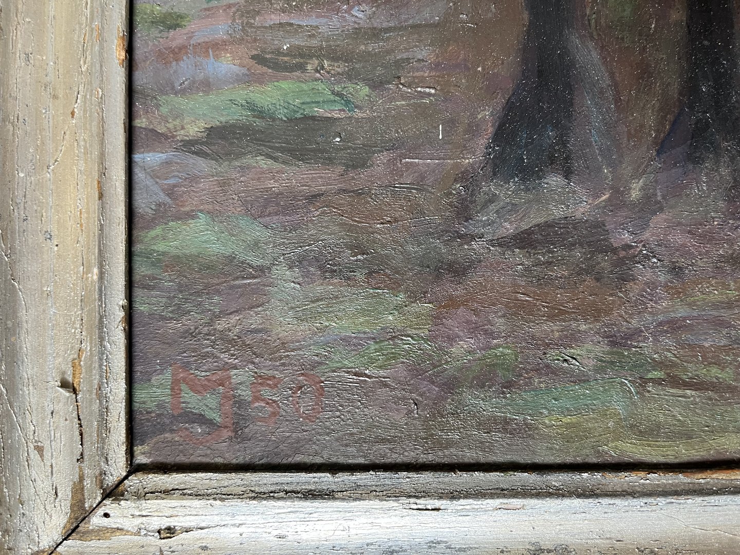 Maleri af Marius Jensen Hindevad - Kål høsten bringes i hus 1950