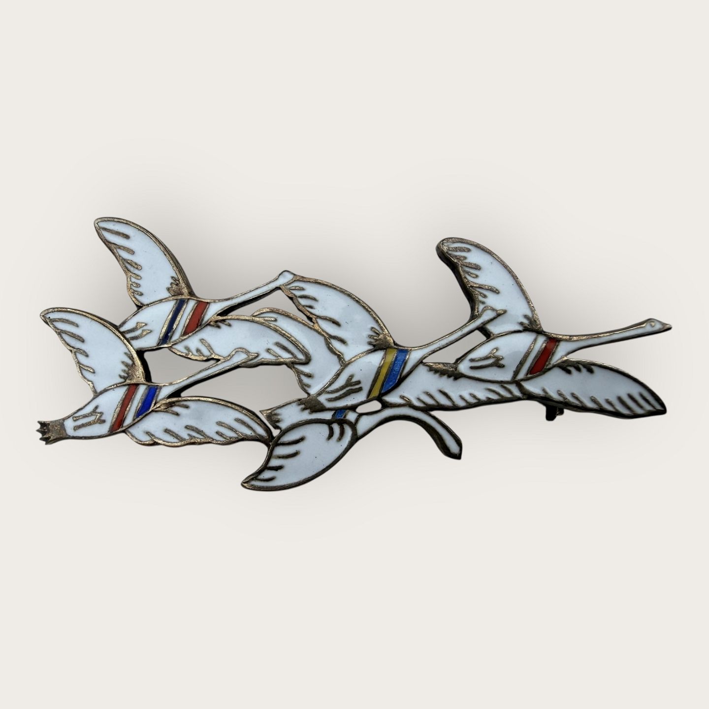 Erik Magnussen, broche i sterling sølv, De fem svaner fra Norden (Symboliserer de fem nordiske lande), Mål ca. 6x2,5cm * pæn stand*