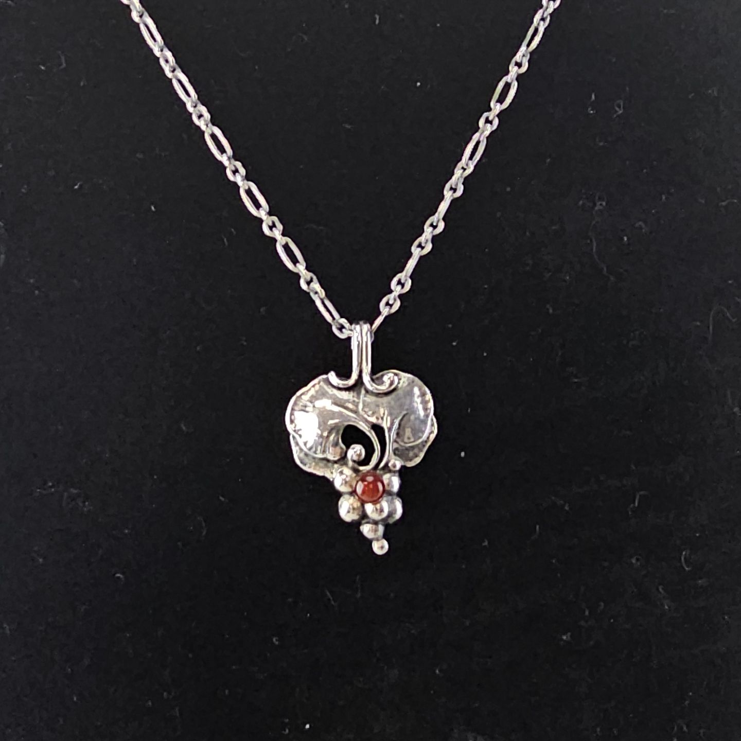 Vedhæng i sterling sølv med motiv af en klase druer, og karneol perle.