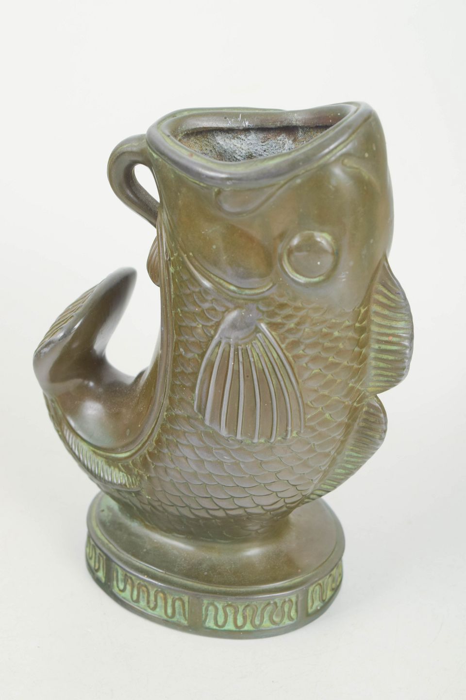 Skulpturel fiskefigur i diskometal udført i et markant og dekorativt art deco formsprog. Model 2193.