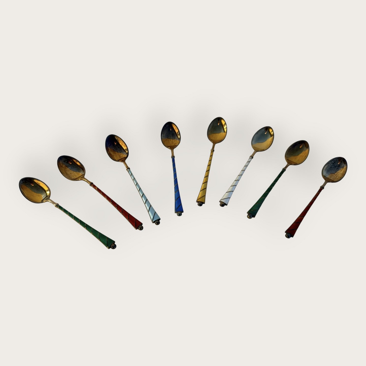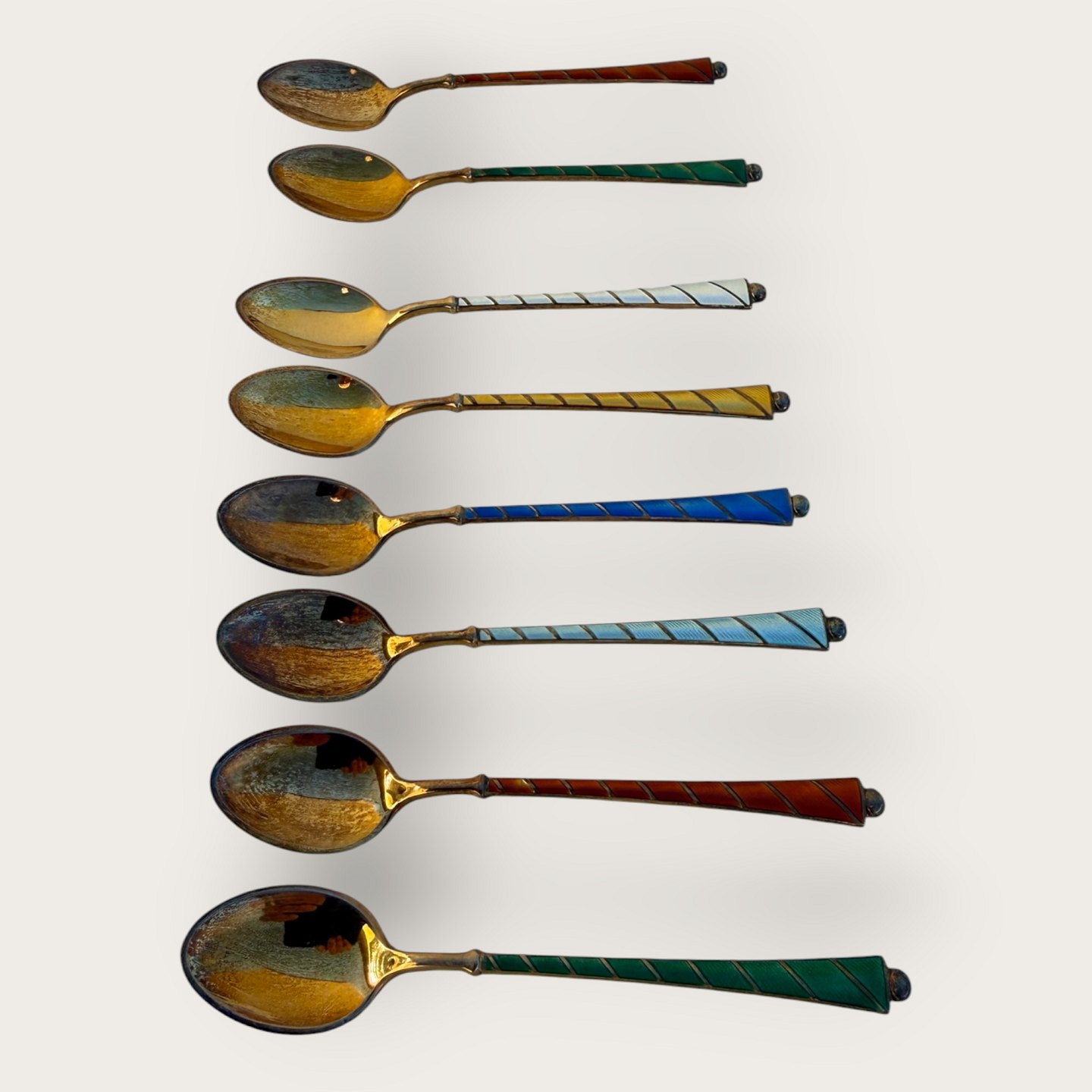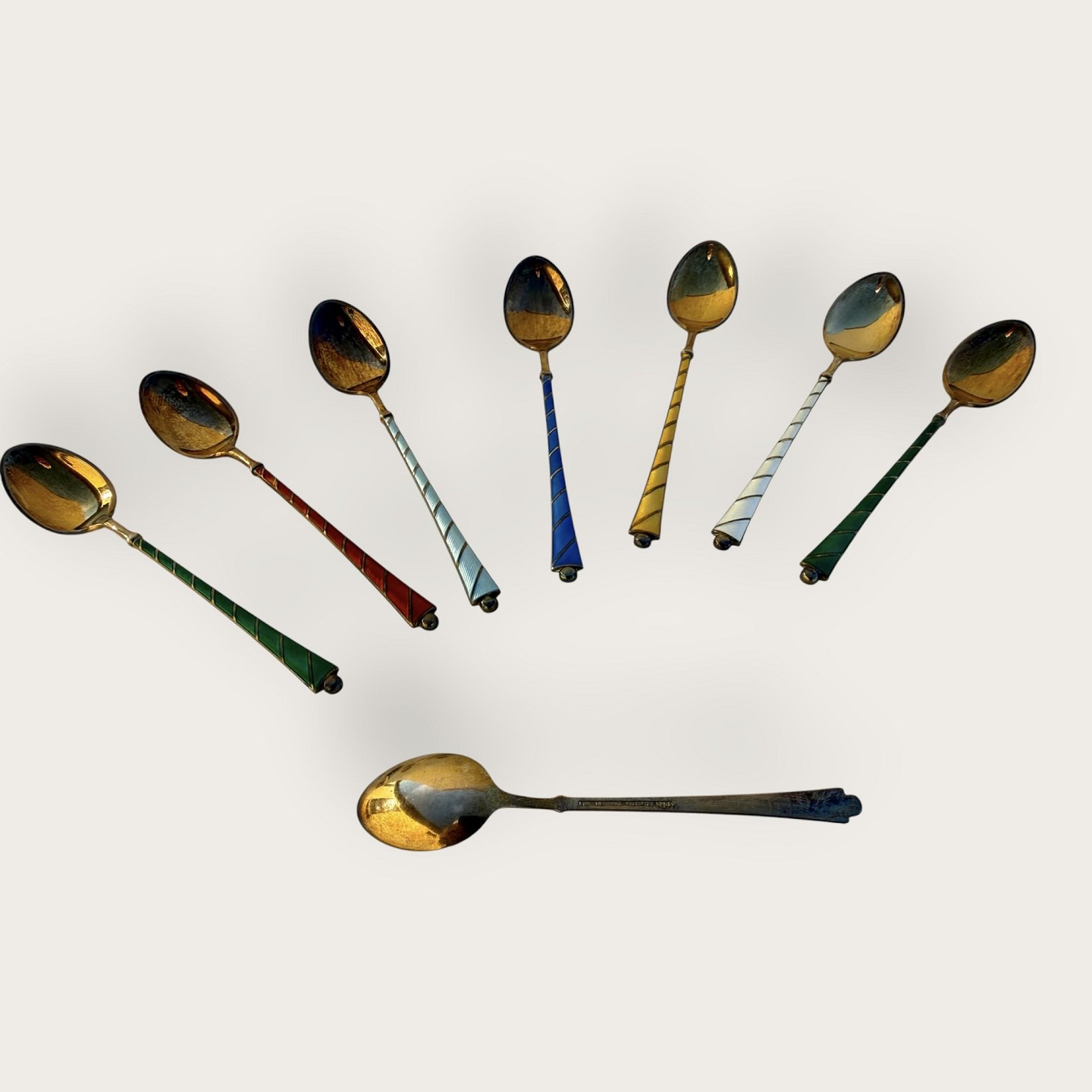 Teskeer, Emalje og forgyldt sterling sølv, Stemplet: Ela Sterling 925S, for Egon Lauridsen, 9,5cm lang *Pæn stand*