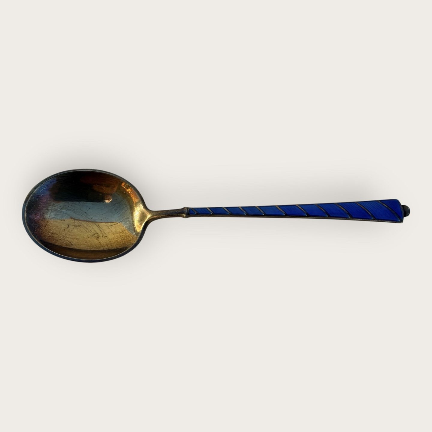Ske / sukkerske, Emalje og forgyldt sterlingsølv, Stemplet: Ela Sterling 925S, for Egon Lauridsen, 13cm lang *Pæn stand*