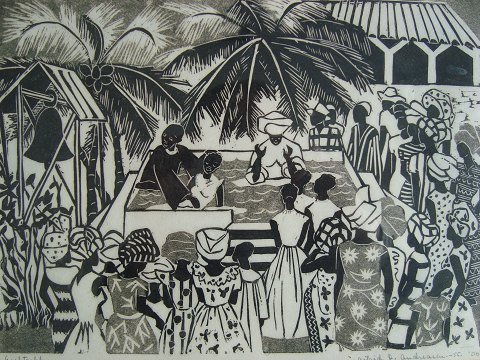 Træsnit - Astrid O. Andreasen - "Douala" 1956.